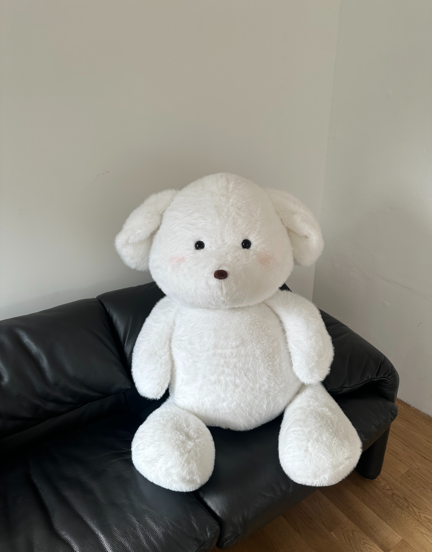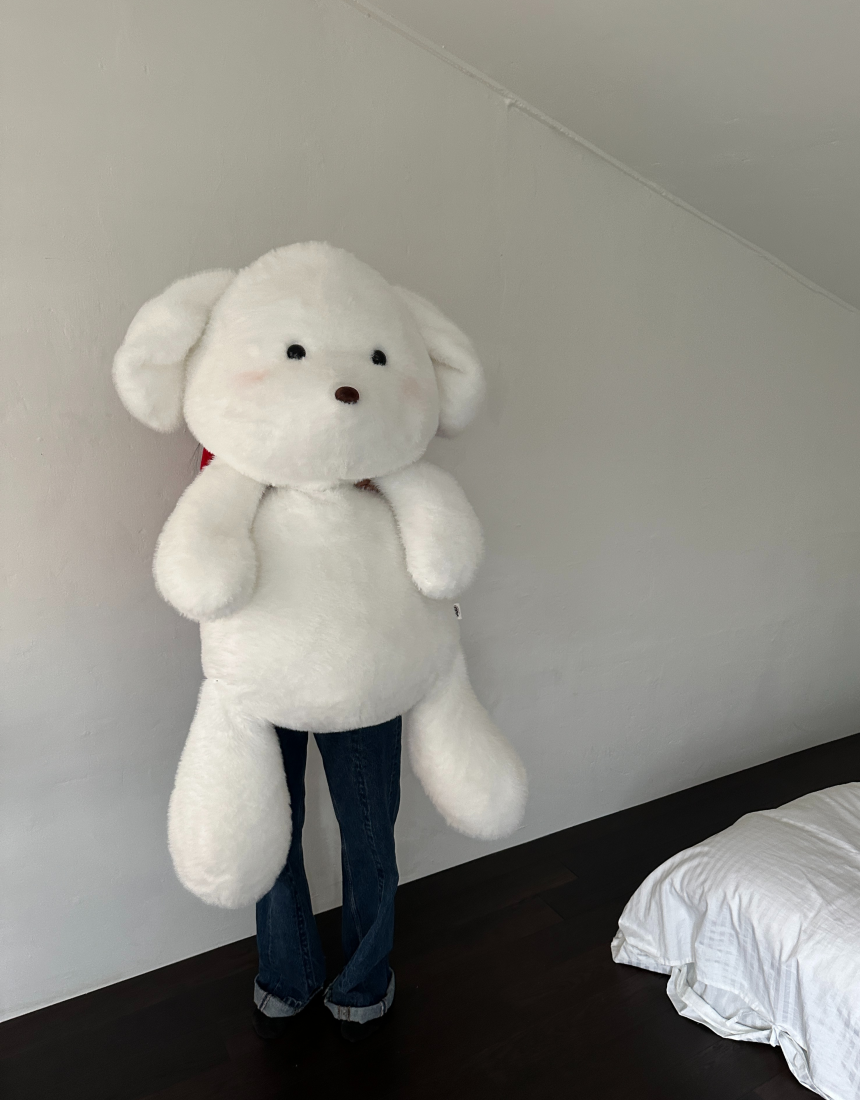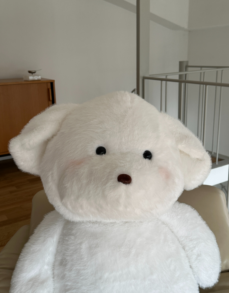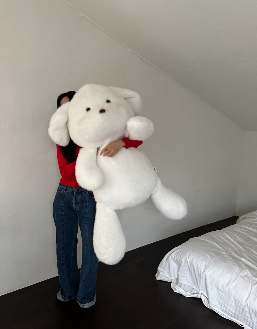 몽모 특유의 뽀용한 얼굴이 더 커져서 더욱 귀여워진 모습.품에 꽉 차게 안기는 120cm 사이즈.