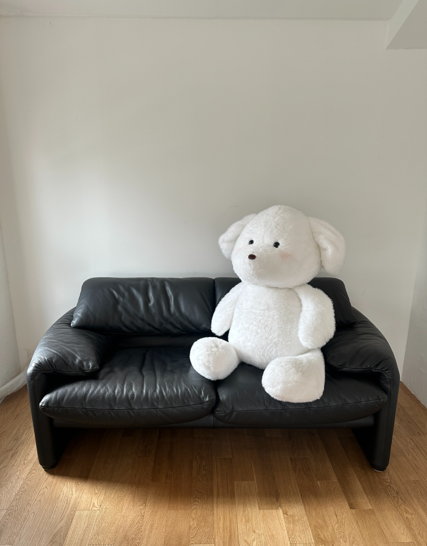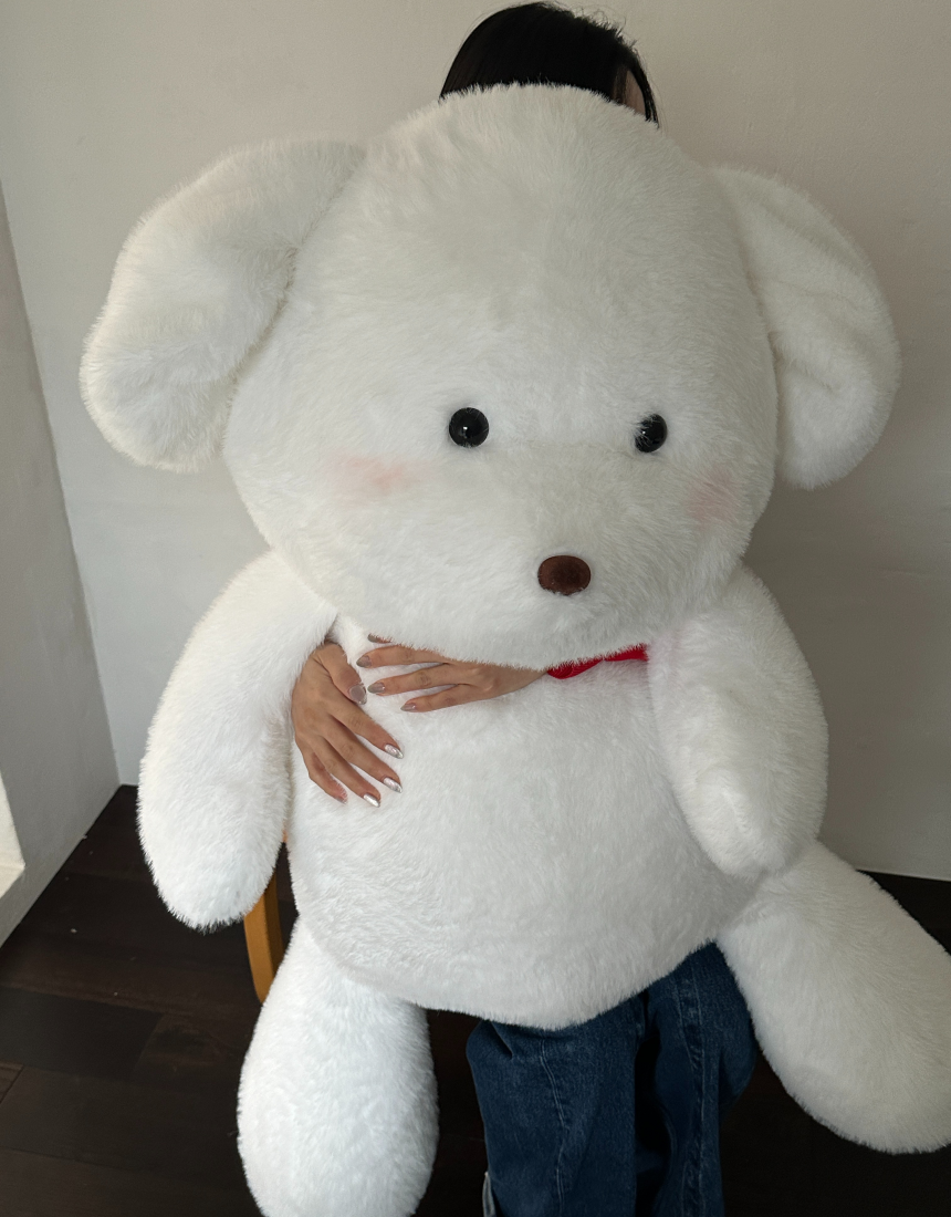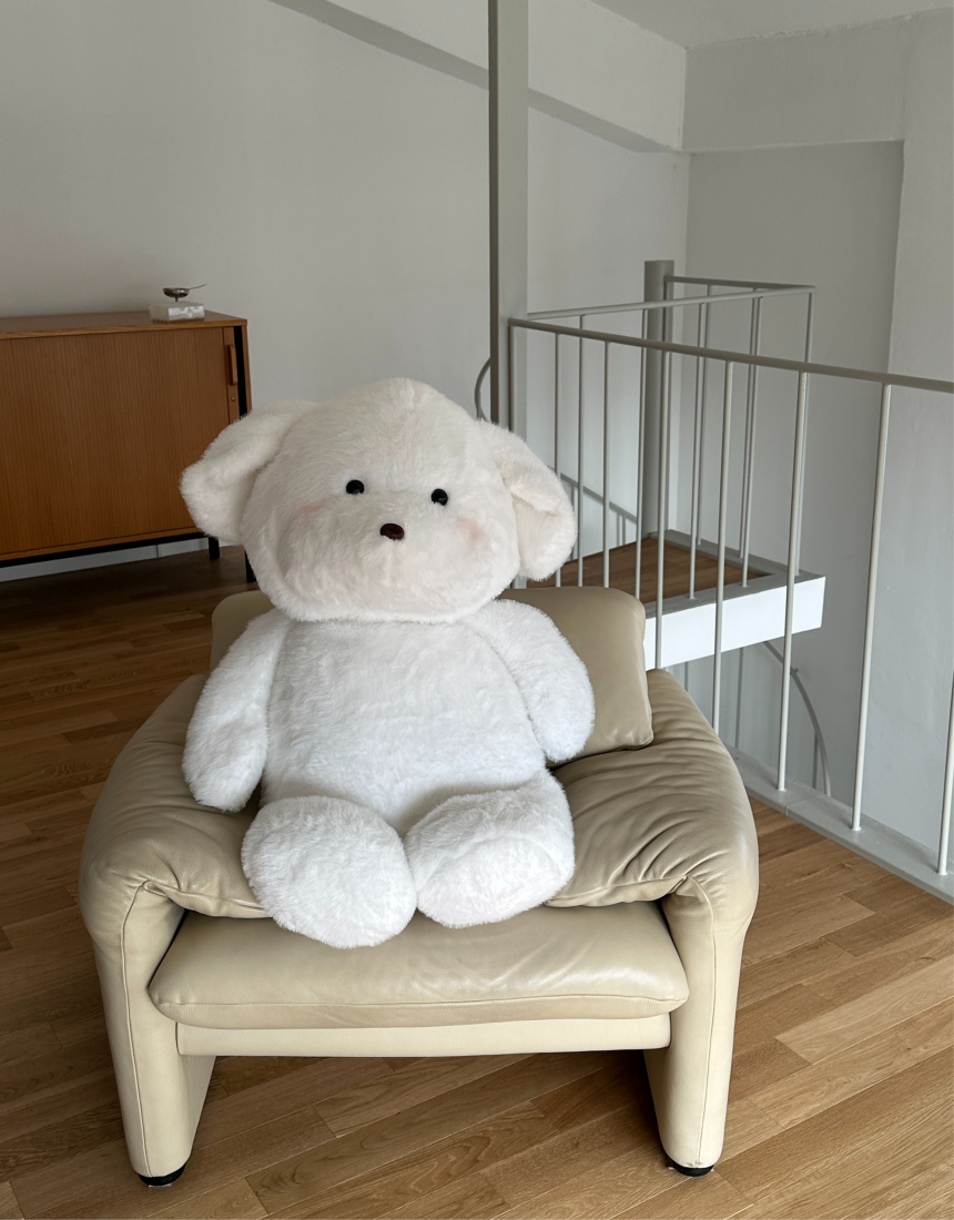 몽모 특유의 뽀용한 얼굴이 더 커져서 더욱 귀여워진 모습.품에 꽉 차게 안기는 120cm 사이즈.